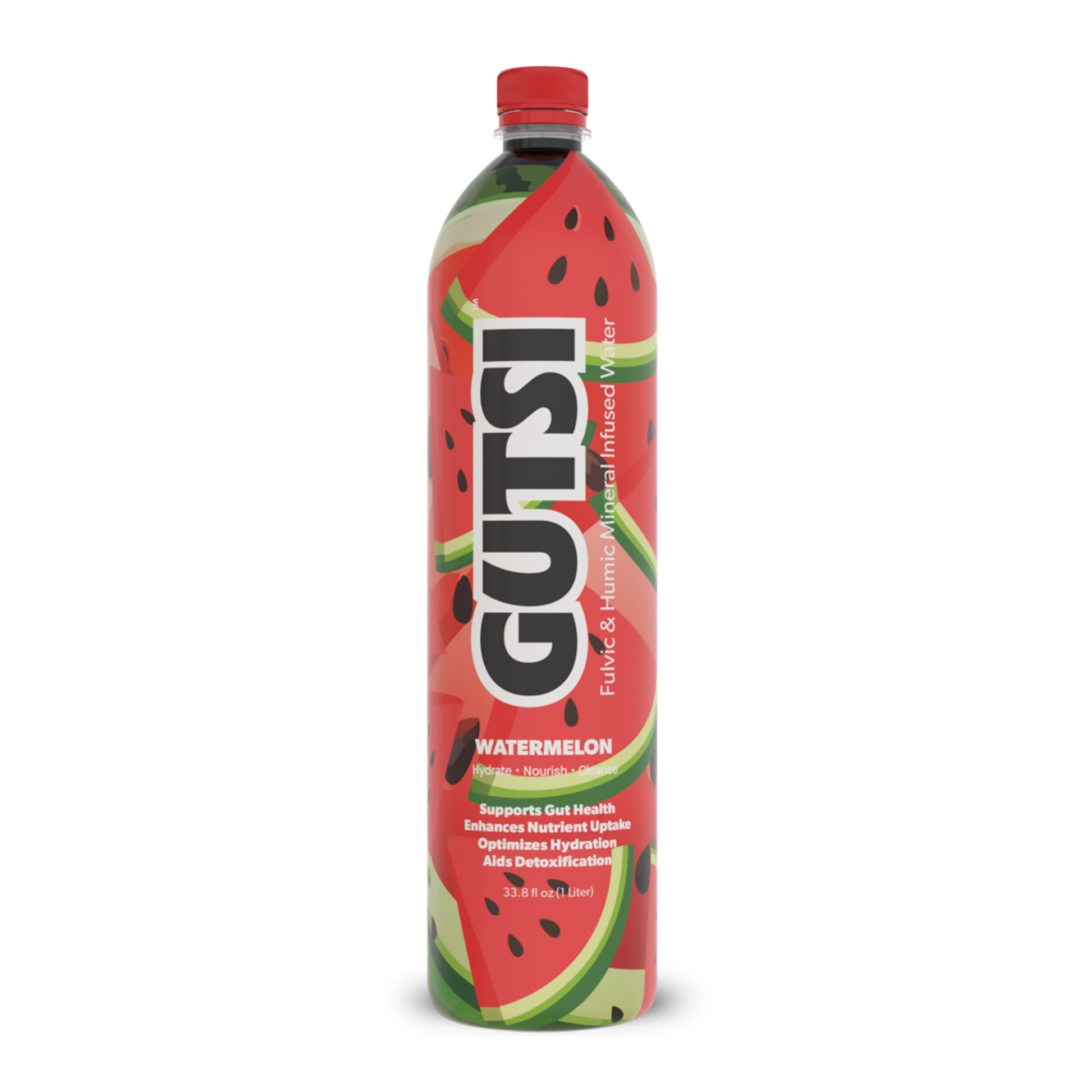 GUTSI Watermelon is a still (non-carbonated) mineral-infused water crafted to hydrate deeply and support gut health — with a light, refreshing watermelon taste. Powered by our signature blend of fulvic and humic minerals, this formula helps your body absorb nutrients more efficiently while delivering clean, functional hydration.